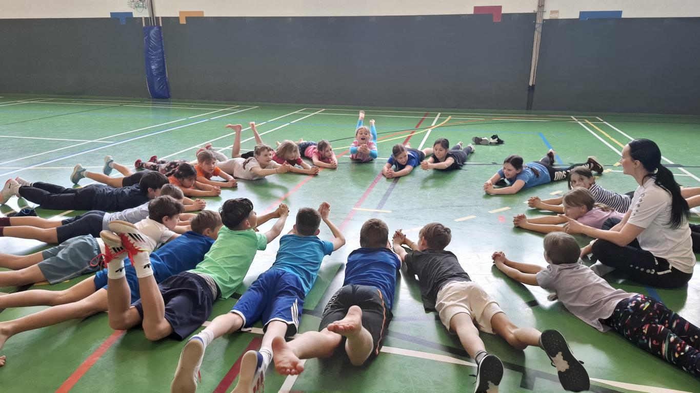 Im Turnsaal nutzten wir die coole Airtrack Matte, ein ganz besonderes Erlebnis! Außerdem werden wir in den nächsten Wochen in Bewegung und Sport von Briggi unterstützt, die mit den Kindern gymnastische Übungen macht.