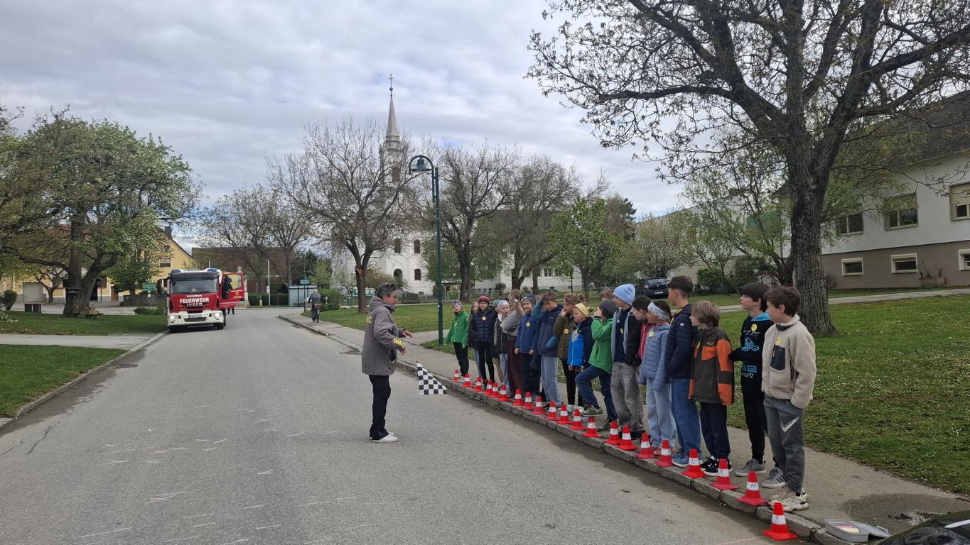 Die Kinder der 3./4. Schulstufe nahmen am Projekt "Hallo Auto" teil - hier wird den Kinder bewusst gemacht, wie lange Autos tatsächlich für Bremswege brauchen und dass sie wirklich vorsichtig im Verkehr unterwegs sein sollen. Highlight des Vormittages war natürlich, dass die Kinder das Auto selbst bremsen durften!